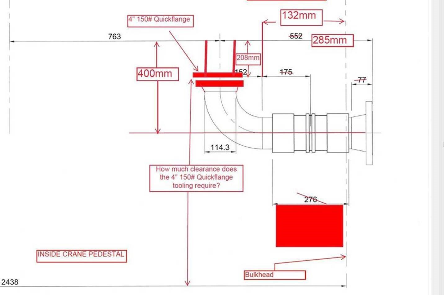 ICR’s standard installation equipment was mobilised, which was able to contend with the tight clearance, limited rigging options and space restrictions – having only limited clearance to the nearest I-beam obstruction. The technician mobilised was ‘confined space entry’ trained in order to complete the install in a safe manner. All items were mobilised within 48hours, minimising the client’s downtime. The Quickflange™ joint was also tested post installation, to ensure the integrity of the connection and that it conformed to industry and client standard.