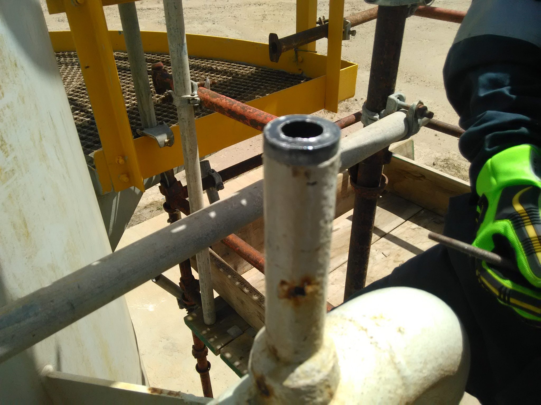 Quickflange™ technology was identified to repair a leaking 4” Sch80 carbon steel nozzle feeding from a diesel tank. Hot work was not an option due to both time constraints and the extreme space restrictions with the nozzle being located in a void which was too small for a welding habitat.